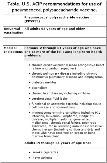 For further information about recommendations for use of pneumococcal vaccines, including contraindications, precautions and adverse effects please see the following: