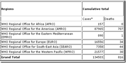 (Note: 50% of these reported deaths are, unusually for novel H1N1, among the elderly. While this is too small a sample to draw any conclusions from, this is something to watch).