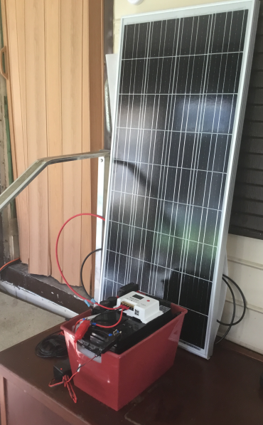 It relied upon a pair of 40 watt solar panels I bought in the early 1990s, and a couple of small (35 amp/hr) lead acid batteries. The panels still work, but are approaching the end of their life, and lead-acid batteries - while cheap - are heavy, have a short (2-4 year life), and can only be discharged about 50% without damage.
